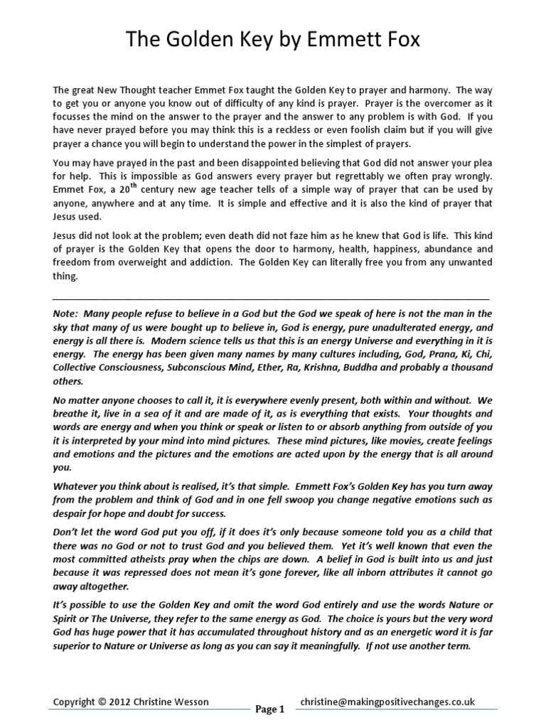 . Get Your Emmet Fox Today. The Golden Key is Scientific Prayer. Do exactly what it says and if you are persistent enough.